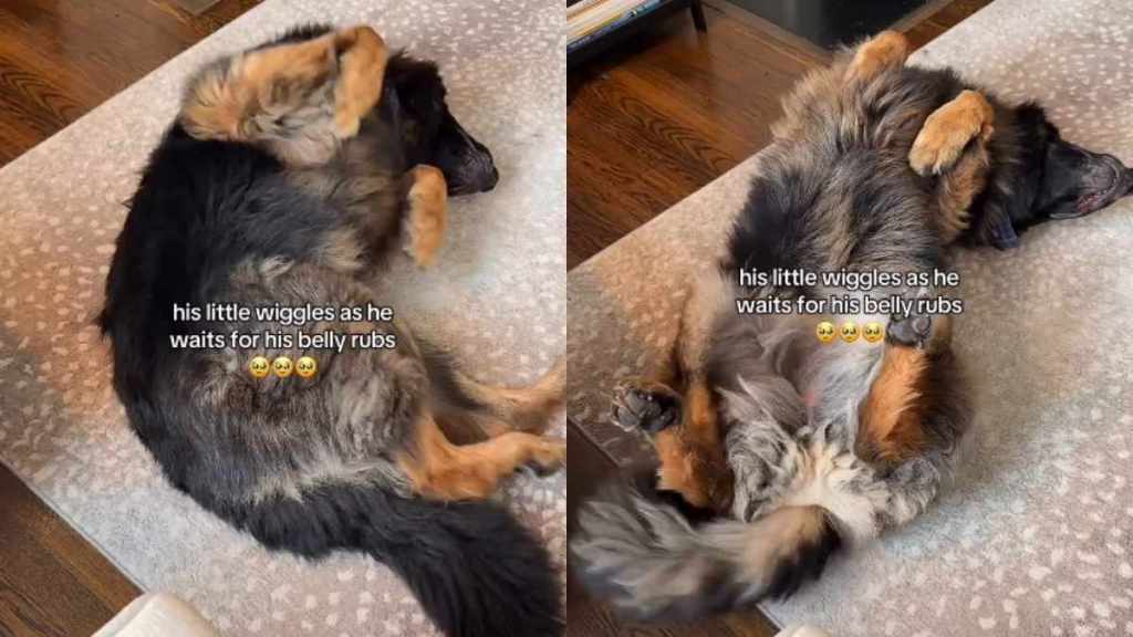 The video features Hiro, a German Shepherd with a big personality and an even bigger love for belly rubs. In the video, the dog is seen lying comfortably on his back, paws slightly curled as he gently wiggles them in the air, waiting for his belly rubs.