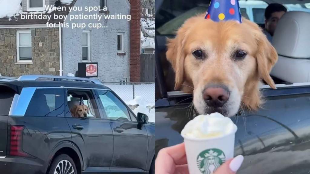 Dog patiently waiting for pup cup on birthday steals hearts