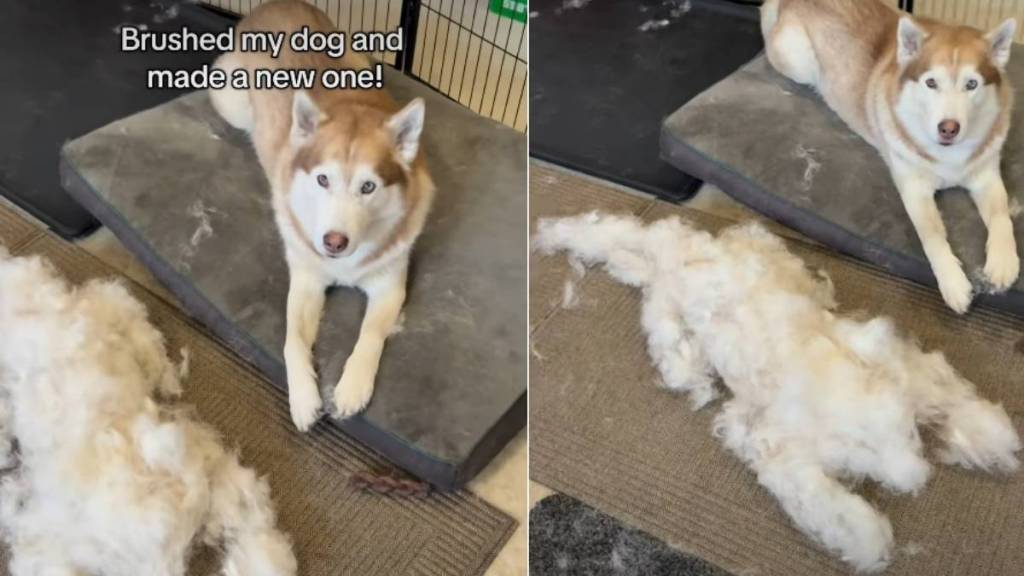 The viral video, shared on Instagram by @twohuskypups, left viewers stunned by the impressive amount of fluff that came off the pup during a routine grooming.